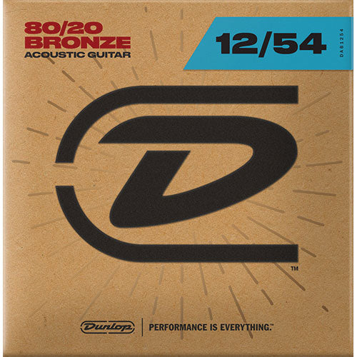 DAB 1254 - Dunlop Acoustic 80/20 Bronze Strings gleam with brightness and clarity for a sound that's vibrant and expressive. The finest wire combined with precise construction produce versatile strings durable enough to withstand hard strumming-and responsive enough for delicate fingerpicking. Chords ring out with great clarity, bass notes growl, and harmonics pop and sing. Our formula creates strings that are exceptionally long-lived, they break in fast and stay bright so you can spend more time playing and less time changing your strings.
