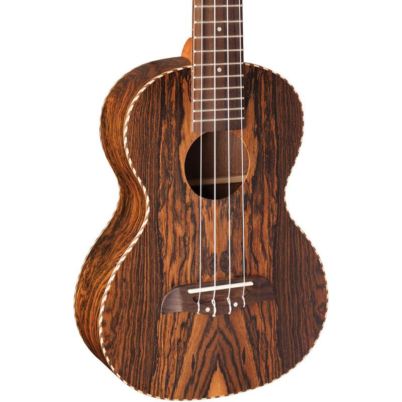 The OU9T Tenor model ukuleles are made of Bacote, an exotic wood native to Mexico and Central America, these highly figured instruments feature a 19 fret neck, decorative rope binding, geared tuners and Aquila® strings. These instruments offer a warm, clear and distinctive pallet of tonality and beauty.